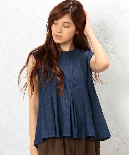 軽やかなデニム素材でノースリーブブラウスをデザインしました。 フロントはタックデザインにし、フレアシルエットを表現。 爽やかなブルーがこれからの季節にぴったりです! ワイドボトムと合わせて今年らしい着こなしを楽しんで♪ 店舗にお問い合わせの際は、全国のグリーンレーベル リラクシング各店まで下記の品番をお申し付け下さい。 品番:3611-105-0995
