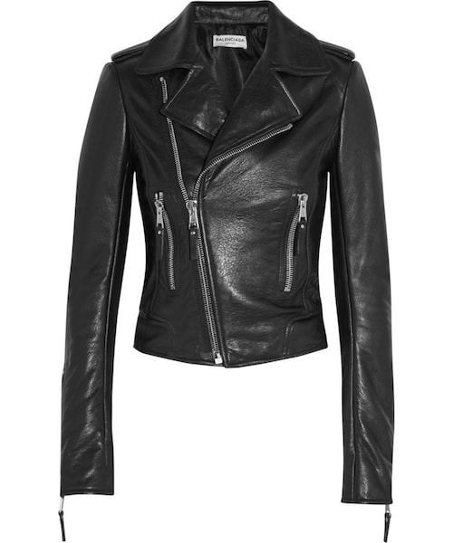 Balenciaga Textured-leather biker jacket, Balenciaga's biker jacket is a timeless investment you'll treasure forever. Cut for a close fit, this piece is crafted from supple textured-leather and has an asymmetric zip fastening and silver hardware. Wear it over everything from party dresses to sweaters Size: 36. Gender: Female. Age Group: Adult.
