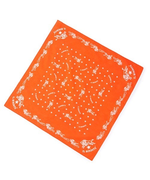 ブランドアイコンのバッファローや星がプリントされたバンダナ。 大判サイズなので、いろんな用途で活躍します。 サイズは52cm×52cmです。