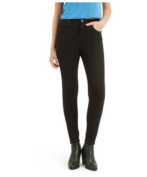 High-waisted skinny jeans in an ink black wash are cut from a super stretchy cotton blend and end in ankle-grazing hems. 25 1/2" inseam; 9" leg opening; 10 3/4" front rise; 14" back rise (size 30 x 30). Zip fly with button closure. Five-pocket style. Dark dye may transfer to lighter materials. 91% cotton, 6% polyester, 3% elastane. Machine wash warm, dry flat. By Topshop; imported.