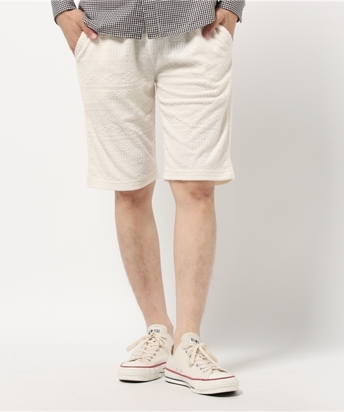 大ブレイク中のオルテガ模様がデザインされたジャガード織りのショートパンツ☆ タオルのようなソフトな着心地のパイルなら、着用時のストレスも軽減されます! 無地感覚で取り入れられるので、いかにもな民族柄が苦手な方にもおすすめ! 同素材のパイルオルテガジャガードパーカーと、是非セットアップで着こなして頂きたいアイテムです!