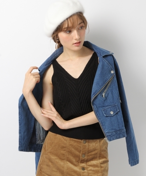 WEB限定価格になりました!! ※2016秋商品です。 ケーブル編みのキャミタンクは今の時期新鮮な雰囲気! コンパクトなシルエットで、Tシャツに重ねるのはもちろんそのまま1枚でトップスとしても活躍します♪♪ 着丈も短めなのでハイウエストボトムと相性◎!! コットン&アクリルなのでチクチクせず、さらっとした着心地です。