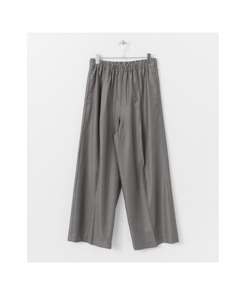 イージーワイドパンツが素材違いで登場。 穿いた印象は上品できちんと感があり、 ウエストをゴム仕立てにしているのでリラックス感も持ち合わせたデイリーユースして頂きやすい一着。 ヒールやシャツ合わせでお仕事用に、カットソーやスニーカーでカジュアルにと、 オンオフ問わず活躍する一着なので着回しの効くアイテムです。