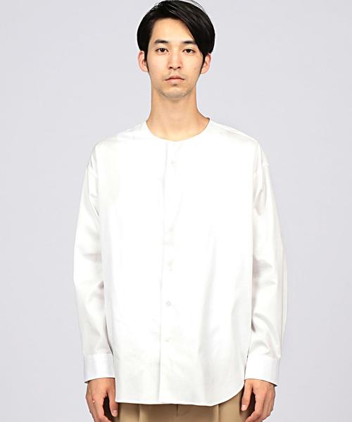 EN ROUTE(アンルート)オリジナルコレクション 一枚着の王道 ビックシルエットのノーカラーシャツ コットンピンオックスを使用したオーバーサイズシャツ。ドロップショルダーのビックシルエットがクリーンなルーズ感を演出。ヘムラインのデザインを前後で変えるといったさりげないディテールも取り入れてシャツをデイリーアイテムに昇華させました。テーパードパンツやワイドパンツにインするのはもちろん、カジュアルなイージーパンツやハーフパンツに合わせるのもおすすめです。 店舗にお問い合わせの際は、 EN ROUTE各店舗まで下記の品名/品番をお申し付け下さい。 品名:ENR C OX N/CLR SHT 品番:7111-299-0143