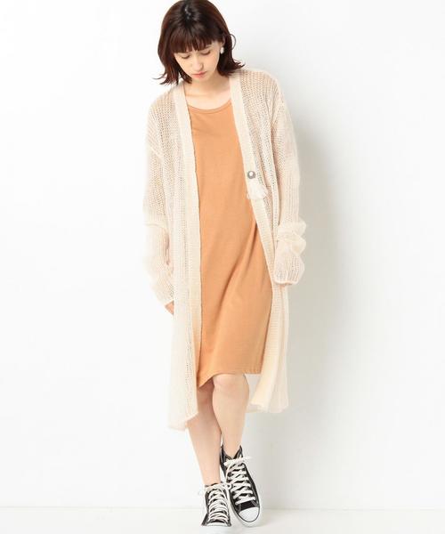 天竺ロングカーディガン☆ローゲージ編みのゆったりとしたシルエットのニットカーディガン。フロントの飾りコンチョにフリンジタッセルがワンポイントになっています。ふわっとしたゆるい網目が透け感を生むカーディガンは、思いっきりルーズにずるっと着こなすのがオススメです。袖と着丈を長めにしたとことん女の子らしくスタイルリングいただける一枚です。※着用、お取り扱いの際は商品についておりますアテンションタグ、洗濯ネームを必ずご確認ください。店舗にお問い合わせの際は、全国のAnother Edition店舗まで下記の品名/品番をお申し付け下さい。品名:AEMBC W/NyテンジクLONG CGN 品番:56151990935