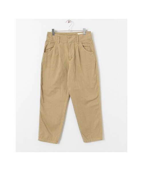 カジュアルな雰囲気で、シワ感のある風合いが特徴のタックパンツ。ややオーバーサイズで、TシャツやブラウスをINした大人カジュアルなコーディネートがオススメです。足元は、ヒールやトレンドのレースアップサンダルも相性◎※この商品は、素材の特性上、直射日光や蛍光灯に長時間に当たると変色や色褪せすることがありますので、ご注意ください。