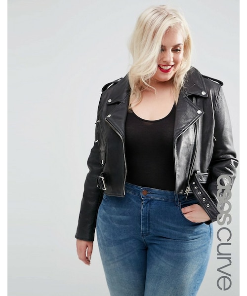 ABOUT ME Body Lining: 100% Cotton, Sleeve Lining: 100% Polyester. Lined real leather Heavyweight design Shoulder epaulettes Studded lapels Zip fastening Functional pockets Belted hem Regular fit - true to size Machine wash Our model wears a UK 18/EU 46/US 14