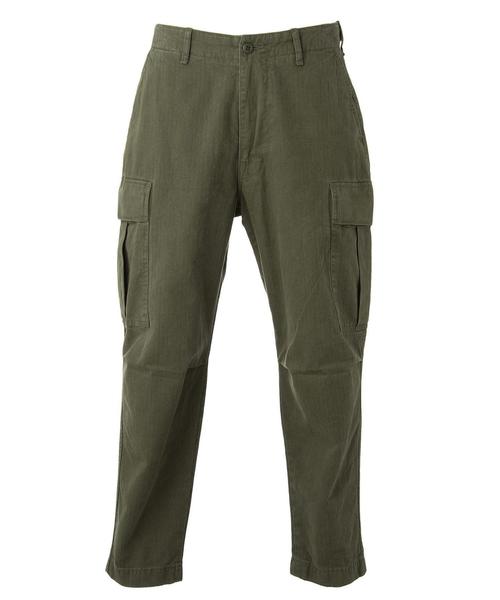 ミリタリーヘリンボーン生地を使用したフィールドトラウザース。デザインはM-65タイプをベースにアレンジしています。シルエットは腰周りにボリューム感があり、膝から裾にかけてテーパードをきつくしたボンタンタイプのシルエット。店舗にお問い合わせの際は、下記の品名/品番をお申し付け下さい。品名:SONS FIELD TROUSERS 品番:5514-211-0124