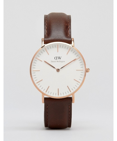 Watch by Daniel Wellington, Real leather strap, Stainless steel case, Two hand movement, Dash indices, Pin-buckle fastening, 3ATM: water resistant to 30 metres (100 feet), Presented in a branded box. ABOUT DANIEL WELLINGTON Daniel Wellington was a preppy power player, known for his impeccable style and his watches, of course. That's also why Swede Filip Tysander named his line of watches after him. Think clean designs, NATO straps and a refined sense of color. Impeccable, just like the man himself.
