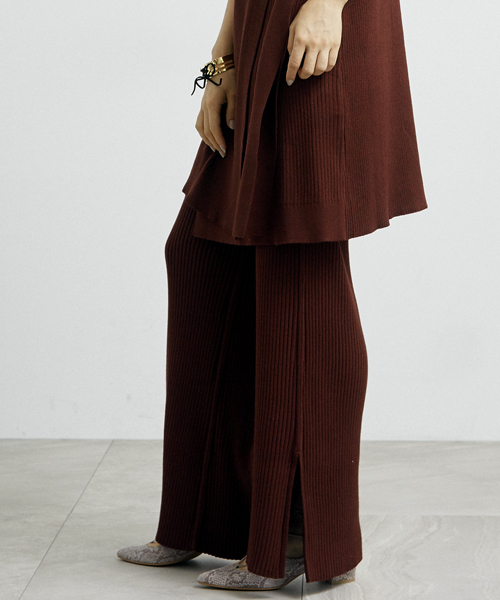 This Item is Made in TOYAMA. この秋注目のニット地のフレアパンツ。 凹凸のある縦縞で表情のある着こなしが可能に。 レトロな印象のフレアタイプのシルエットですが、サイドにスリットを入れることで野暮ったくならずすっきりとした印象に仕上がりました。 今年らしく着こなすなら同系色のトップスと合わせたコーディネートがおすすめ。 同素材のワンピース【13733634】と合わせてセットアップとしてもお使いいただけます。