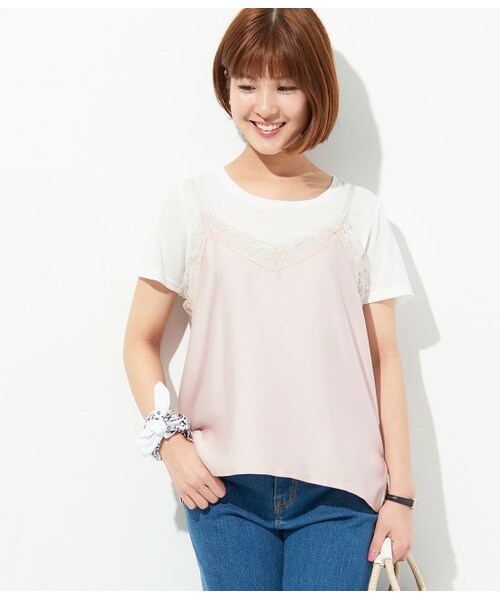 さりげなくレースの飾りをあしらったサテンキャミとシンプルなTシャツの2点セットになります。気ラクなTシャツをフェミニンな印象で着こなせるので、デイリーカジュアルのオシャレにぴったり! もちろん別々でも使えるので、お手持ちのアイテムと合わせれば幅広いコーデが楽しめます。ボトムスを選ばないので活用度もバツグンです!