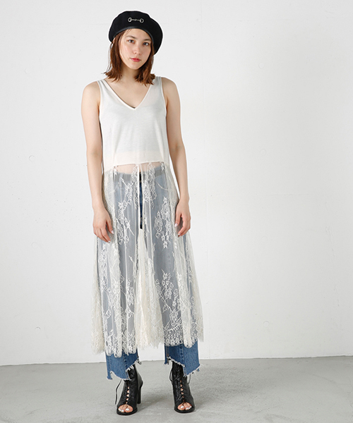 歩くとデニムが見えるようにフロントにはスリットを入れたこだわりのデザイン。 プラスDENIMだけでも、上からTシャツやKNITを着てスタイリングも可愛い。通年使える万能アイテムです。