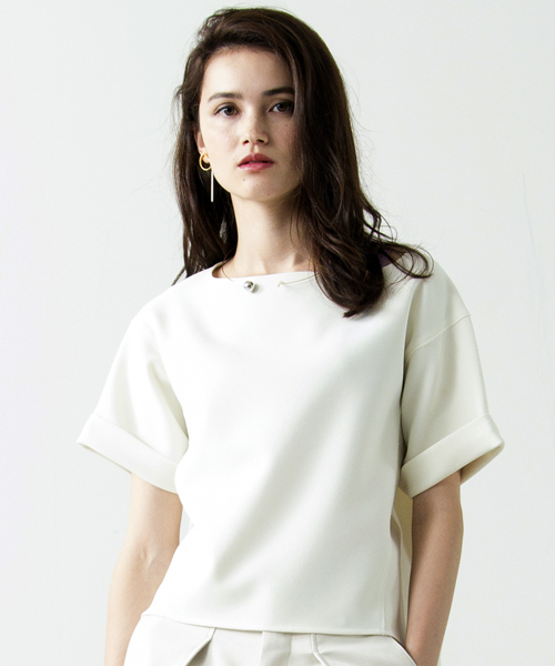 This Item is Made in AKITA. 高密度に編みこまれたハリのある素材感が特徴のTOPS。 ゆるめのちょっとルーズなシルエットがこなれた印象です。 ベースはシンプルなデザインですが、カットオフやシーム線などの細部のポイントにこだわり、一枚で着ても洗練されたスタイルに。 また、見た目以上に軽く、ストレッチの効いた素材を使用しているので楽に着用頂けます。 少しだけ着丈を短めにとっているので、ワイドパンツやガウチョ等とも好相性です。