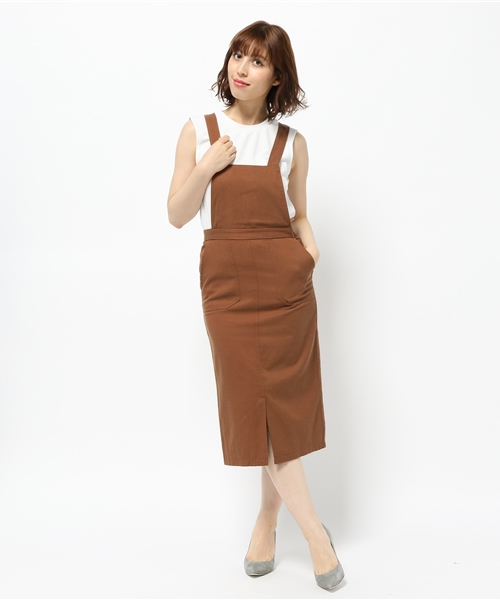 キレイめカジュアルに着こなせるジャンスカ。子供っぽくならない生地で仕立てており、大人カジュアルにお勧めです。トレンド感のあるIラインに、スリット入りで足さばきも良く、膝の隠れる着丈もポイント。ノースリやTシャツやブラウスなど、シーンに合わせてコーディネートが組めます。