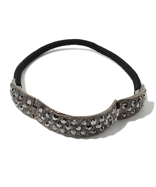キラキラのラインストーンをびっしり敷き詰めたカバーヘアゴム。サッと結んだ部分にカバーをかけるだけで、普段スタイルが即リュクスにチェンジ。簡単に使えるのでデイリーでも使いやすいアイテムです。