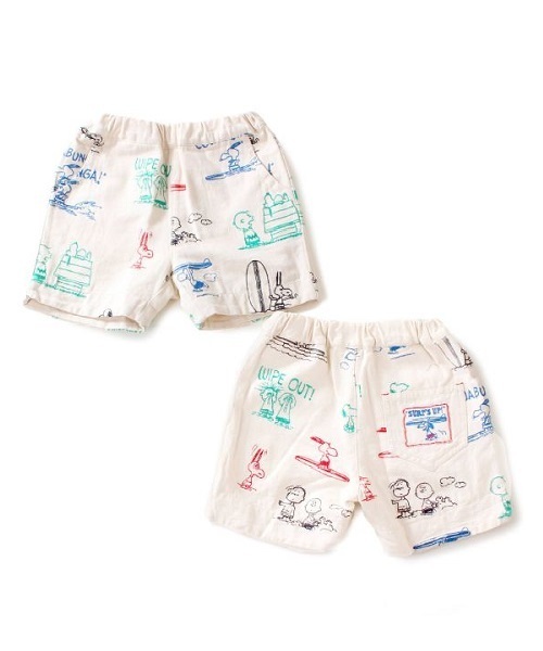 ブーフーウーの代表作「PEANUTS」のハーフパンツシリーズから、人気のSURF'S UP柄を全て刺繍で表現したスペシャルな1枚が新しく登場です。 合わせやすい生成りベースにPOPなカラーの刺繍は、プリントシリーズとはまた違う温かみが伝わります。 オトナサイズもあるので、家族でお揃いコーデも楽しめます。 ※キッズサイズのウエストは総ゴム仕様です。 ※大きい柄の為、柄の出方が1点1点異なりますので予めご了承頂けますようお願い申し上げます。