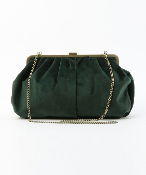 【VELVET BIG CLUCH】 60年代後半から70年代前半の色気のある夜を彷彿させる微光沢が独特なベルベット素材を使ったクラッチBAGは大き目のガマ口ディテールでよりレトロな雰囲気を演出。ガマ口部分を折り畳み抱きかかえるように持つのがおすすめのスタイル。付属でチェーンがついているためショルダーBAGとしても使っていただけます。ベロア生地・ベルベット生地は今季外せないトレンド素材♪