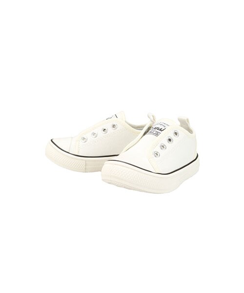 ベーシックなデザインが特徴のキャンバススリッポンです。つま先部分をやや丸みを出すことで少し子どもらしく、やわらかい印象に。スタイリングに大活躍の1足です。使いやすいホワイトと、ネイビーの2カラー展開。