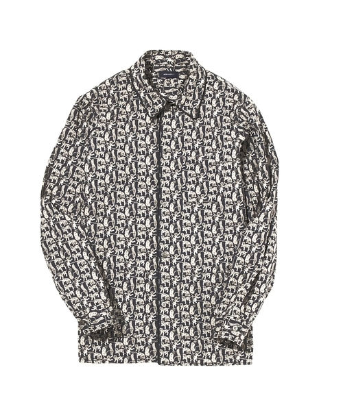 アメリカンラグシーオリジナル、ロンドンLIBERTY社のチーター柄モチーフを使用したパジャマシャツ。 チーターモチーフをオリエンタルなタッチで表現した総柄プリント。 柄にインパクトがあるので、衿端、前端のみパイピングを使用したスッキリとしたディテールのパジャマシャツ。 ポケットも左胸、両腰に付いた実用性のあるデザイン。 ミュージックシーンのテーマ性を持ったデザインシャツになります。 晩夏、初秋にスッキリとしたスキニーやショーツなどと合わせるシンプルなスタイリングがお勧めです。 LIBERTYファブリック下げ札付き。