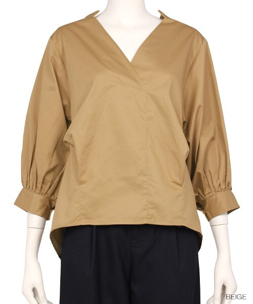 素材:綿100%通気性の良い綿100%素材を使用したドルマンブラウス。ゆったりとしたサイズ感で、着用した時ルーズに着崩した雰囲気が出るように、袖のボリューム感やタックをいれて、フォルム感が出るように作成しています。キャミビスチェのインナーにも、1枚でワイドパンツやスカートに合わせても、バランス良くまとまるよう仕上げています。