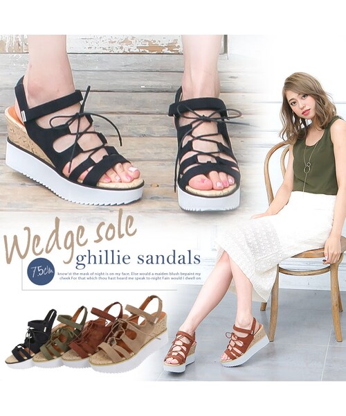 コルクソール+ホワイトソールの異素材ウェッジでおしゃれ感UP!トレンドのギリーをより履きやすくマジックテープのアンクルベルトに仕様変更しているので歩きやすい上に脱ぎ履き楽々◎【素材・サイズ感】S~LLの4サイズ展開。晩夏~初秋まで使えるアース系カラー展開。ウェッジ部分も高すぎず、長時間履きにもオススメ!【スタイリング】夏のリゾートコーデはもちろんシンプルなデニムスタイルなどにも相性抜群◎◆MODEL(164cm:左ブラック/右ダークオレンジ着)※キャンセル/変更不可【サイズ】S:22.5-23.0/M:23.0-23.5/L:23.5-24.0/LL:24.0-24.5【実寸(cm)約】●サイズ…S/M/L/LL●足首周り…FREE●足幅…7.7/7.9/8.1/8.3●つま先口…1010.2/10.4/10.6●甲幅…11/11.2/11.4/11.6●ヒール高さ…7.5●前高さ…2.5●重さ…片足 M 290g【素材】合成皮革※【伸縮】かかとゴム若干あり/【淡色透け】なし/【濃色透け】なし /【裏地】あり