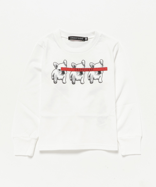 イヌの目の部分をブランドネームで隠したデザインの長袖Tシャツは、コーディネートに合わせやすくモードスタイルにもピッタリ。1匹だけ目が出ているのもカワイイ。こちらの商品は【Made in Japan】です。