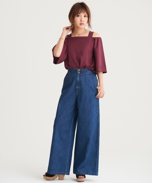 【relaxing line】フェミニン・ガーリーだけじゃないマジェのセカンドライン。マジェの甘さを程よくおさえたデザインバリエーションと、へビーユース可能なマテリアルで、幅広いお客様の日常にとけ込むデイリーな1着をご提案していきます。トレンドのワイドシルエットが嬉しい、オールシーズン活躍するデニムパンツが登場♪どんなトップスとも相性良く合わせられ、ガーリーからカジュアルまで幅広く楽しめる優れもの◎ワイドシルエットとロング丈で存在感たっぷりのデニムは、短め着丈のトップスなどを合わせるのがオススメ☆*摩擦や水濡れによる色落ち・色移りにご注意下さい。*この製品はインディゴ染めです。*特殊加工を施している為、一枚一枚の色のでかた・風合い・色目・サイズ等微妙に異なりますがご了承下さい。*素材の特性上、多少縮むことがありますのでご注意下さい。