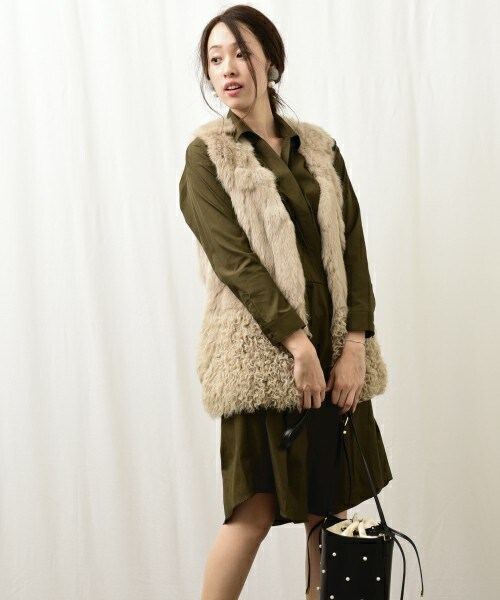ラムとラビットをコンビで使用したファーベスト。 ボリュームがありやや着丈が長めなので、スタイリングにエレガントなインパクトをプラスしてくれます。 身頃はラビット、腰から下はラムを使用しているので腰回りのボリュームがアップし、シルエットのバランスが秀逸なデザイン。 ボトムスを選ばず、カジュアルにもエレガントにもお使いいただけます。