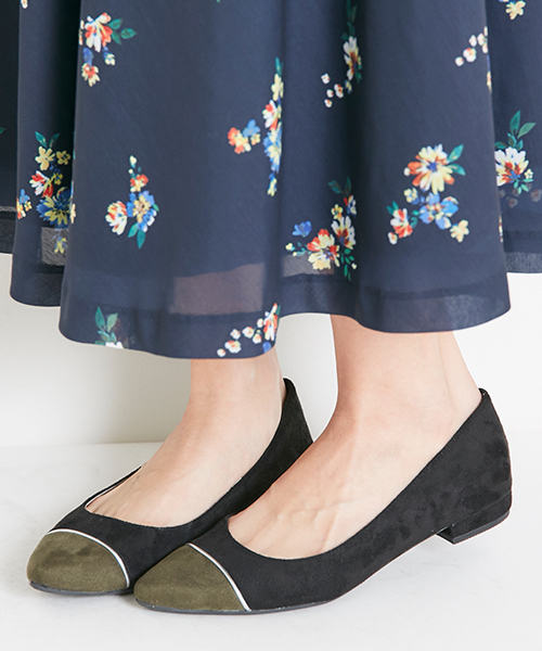 シャープなポインテッドトゥでフラットヒールでもこなれた足元を演出してくれる1足。バイカラーが秋冬コーディネートにアクセントを加え、メリハリのあるスタイリングに。足馴染みの良いスエード素材で優しい履き心地なのも魅力。