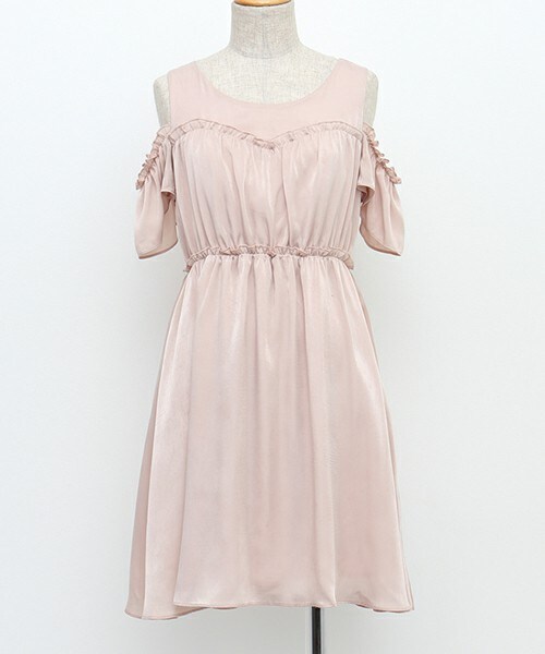 上品な光沢のあるシルクサテンを贅沢に使った、上質な空気を纏うカットオフショルダーワンピース。 ハートを描く胸元にあしらったフリルは、肩まで繋がりロマンティックにからだを包みこみます。 スタイルアップ効果の高いフィット&フレアのラインは、ギャザーをたっぷり寄せてふんわりとした動きを表現。 落ち感のあるスカート部分はひらひらと風に揺れて、永く愛していただける大人の上質さと少女の可憐さをあわせ持ったItドレス。