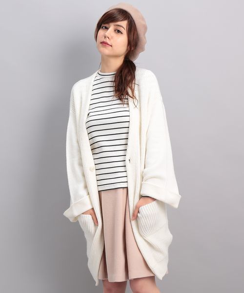 思わず触れたくなるやさしいタッチが魅力。秋スタイルにマッチしたミドル丈のニットカーディガンで旬顔に。 ラフに羽織れるサイズ感がこれからのシーズンに重宝するカーディガン。 上質なアルパカをミックスした編み地は、柔らかいタッチが極上の着心地を約束します。 体型カバー効果のあるゆったりとしたフォルムと、肩周りを華奢に見せるドロップショルダーが、こなれた大人の余裕も演出。 両側にポケットも付いており、秋口は軽めのアウターとしても使える1枚です。 non-no1月号掲載 steady.9月号掲載