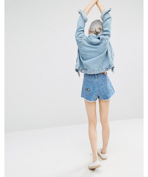 Denim shorts by Monki, Non-stretch denim, High-rise waist, Concealed fly, Five pocket design, Embroidered patch detail, Raw-cut hem, Slim fit - cut closely to the body, Machine wash, 100% Cotton, Our model wears a UK 8/EU 36/US 4 and is 175cm/5'9 tall. ABOUT MONKI If you're all for personality and expression then Monki is the one for you. Known for its street-style-meets-Scandi-chic design and super-fun story-based store concepts, Monki grabs bold, brash colors and a whole lot of prints and patterns before playing them out across a collection of 90s crop tops, Bodycon dresses and skinny jeans.