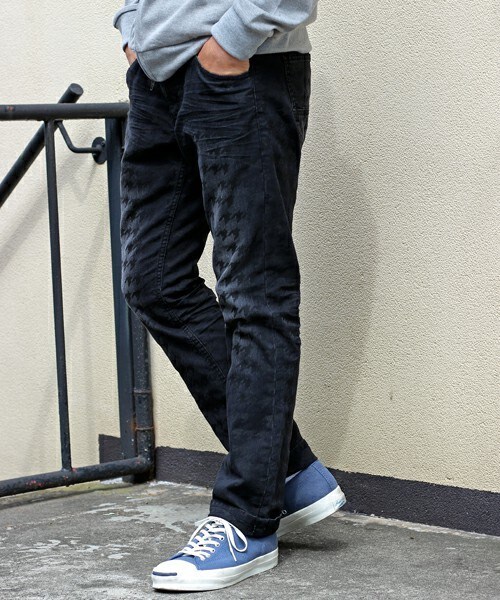 モデル名:PARFAIT<パルファ> 意味:完璧 シルエット:SLIM FTTSTRAIGHT(スリムフィットストレート) MIND BLOWのスリムストレート(定番モデル)を原型に進化させた、 RATTLE TRAPのスリムフィットストレート。 太ももから裾にかけて程良い空間を作りながらフィットしていくスリム感は完璧なまでのはき心地を実現。 <加工> 10oz 千鳥柄ジャガード 縦はネイビー、横はブラックの糸で織ったジャガード生地を採用。 擦りを施した箇所に、ジャガードの千鳥柄が現れてくる加工テクニックは絶賛。 大人まで、幅広く着用出来る一本に仕上がった。