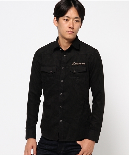 JACKROSEから新作刺繍シャツが登場!! スウェードレザーに近い素材感で表現したウエスタンシャツは、胸元に『CALIFORNIA』刺繍とポケット部分にはブランドイニシャル『J』をステッチで表現するなど新しい拘りで、ボタンも随所にネイティブボタンを採用しアメカジ感をプラスしている。 カラーはブラック、キャメルの2色、サイズはM〜XLの3サイズで展開中。