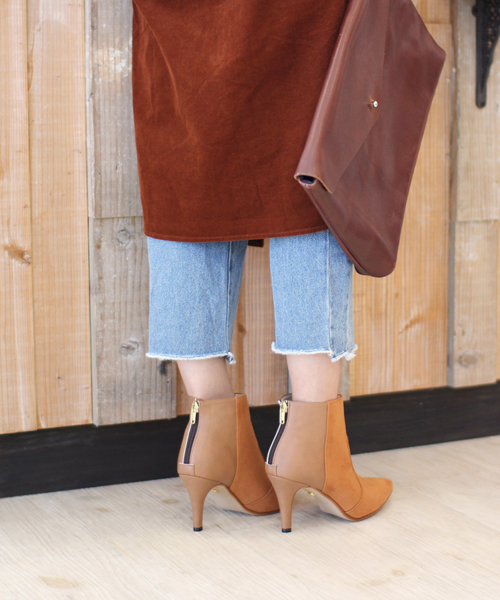 made in Japan*** ポインテッドのデザインが女性らしく、美脚効果もあり、スタイリッシュな雰囲気漂うブーティ。大人気アイテムが再登場。同色の異素材コンビが大人カジュアルな、ブラック・キャメルと、スエードの配色がオシャレなグレー・ベージュの全4色。色々なスタイルに相性よく、絶妙な丈感でバランス良くきれいな足元に仕上げてくれるアイテムです。幅広いコーディネートが楽しめます。 本体(ブラック・キャメルつま先側、グレー・ベージュ全体)に超撥水・防汚加工生地を使用。水に濡れても色が落ちにくく、固くなったり縮まず風合いを保ちます。汚れがつきにくく、ブラシをかけるだけで簡単にお手入れできます。 ⁑ スタッフ感想 ⁑ 【スタッフ M奈】 普段履く靴のサイズ:23cm・M 足長:左22.6cm 右22.8cm 足囲:左21.5cm 右21.0cm 足幅:左9.4cm 右8.9cm 足型:ギリシャ型 足の特徴:甲薄め 指が長い 足幅は狭いが足の中央幅が広い 〈Mサイズを選びました。アーチクッションがとても気持ちいいです。ヒールの割にとても安定しているので歩きやすいです。〉