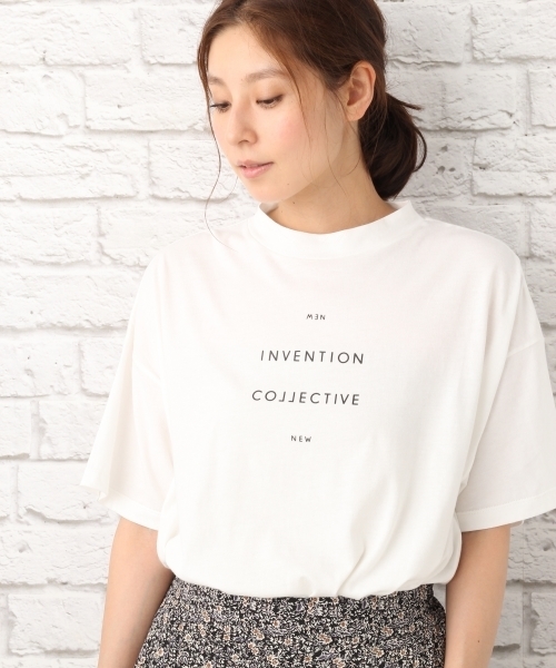 ワイドなゆったりとしたシルエットが印象的なプリントT。 少しハイネックになった襟元と小さめなプリントなので カジュアルになりすぎずに着ていただけるアイテムです。