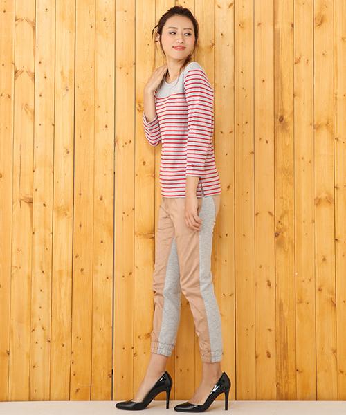 フロントとバックで色を変え、1本で2つの表情を楽しめるコンビネーションパンツ。シンプルな中に、他ブランドにはないエッジィなニュアンスを落とし込み、着こなしのオシャレ度を上げる1本です。ボーイッシュな印象の強いアイテムながらも、足首に向かって細くなるスリムシルエットで美脚度はバツグン! 全体をすっきりと見せ、嬉しい着やせ効果も。後ろ姿をキュートに演出するバックポケットがアクセントに!