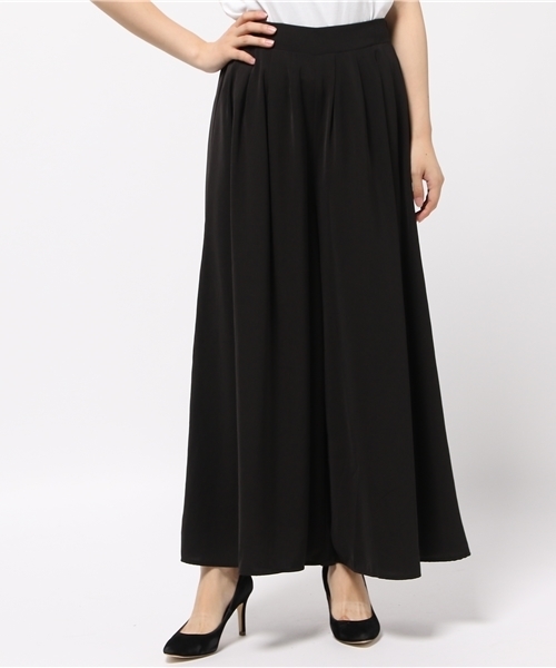 トレンドコーデに欠かせない、スカート風ワイドパンツの「スカンツ」が登場。 スカートのようなデザインで、楽な穿き心地をメイクします。 上質なソフトツイル生地を使用して高級感の感じられるルックスに仕上げました。 全カラーフルレングスの裏地が付いているので、晩夏から冬手前までご愛用いただけます。 バック部分のみにゴムをあしらっているので、INスタイルもキマるアイテムです。 着こなしPOINT ジャストサイズのTシャツなどを合わせがちなワイドパンツも タイトなトップスよりもボリュームがあるものをINして着た方が 今年っぽいバランスに。 季節を先取るシックな秋カラー モカやブラウンなど、秋冬のコーデに使いやすい色味を取り揃えました。