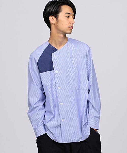 EN ROUTE(アンルート) オリジナルコレクション メリハリのある切替がモダンなダブルフロントシャツ コットンストライプを使用したノーカラーシャツ。打ち合わせを深くしフロントをダブルに仕上げた他ではあまり見ないデザインが特徴。また右胸とバックに別布切替を入れ、裾は前後でカッティングに変化をつけるといった凝ったディテールを随所にちりばめ、ベーシックなシャツアイテムにスパイスを効かせました。ネックはややV字のノーカラーなので、ジャケットやカーディガンのインナーに合わせても抜け感のある襟元を演出いただけます。 店舗にお問い合わせの際は、 EN ROUTE各店舗まで下記の品名/品番をお申し付け下さい。 品名:ENR C STRP N/CLR SHT 品番:7111-218-0148