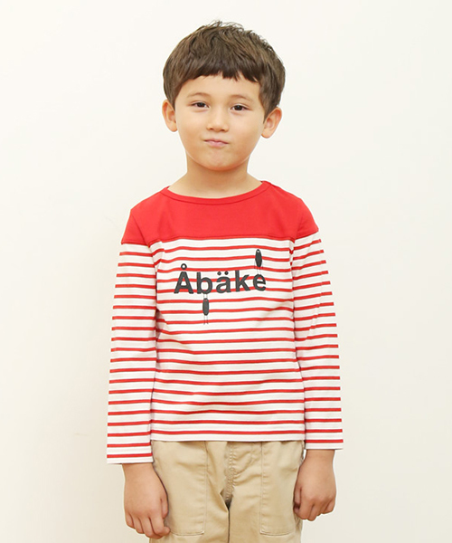 本体は綿100%の長袖Tシャツ。ボートネックとボーダーがほんのりマリンテイスト。1枚あると便利なベーシックなボーダーTです。珍しいスウェーデン語を使ったシンプルなロゴとビューティフルシャドーを組み合わせた愛らしいデザイン。無邪気な姿がほっこりする、クールかつキュートな一枚です。“Abake”はスウェーデン語でモンスター、“Skugga”は影という意味です。[ご使用に関する注意] ●この商品は染料の特性上、雨や汗などによる水濡れ、摩擦が加わる状況での使用により、色落ちや色移りする可能性がございますので、十分ご注意の上ご使用下さい。●洗濯の際は、他の衣類と分けて洗って下さい。また、洗濯後は時間を置かず、形を整え陰干しして下さい。※商品画像と実物では多少色味に違いがある場合がございますので予めご了承下さい。※発売日や販売状況は店舗によって異なります。※この商品は男女兼用のサイズ展開となっておりますので寸法をよくご確認ください。※製品の特性上、寸法に前後1~2cmの誤差が生じる場合がありますが、許容範囲とさせて頂いております。graniph modelH120 着用サイズ:110