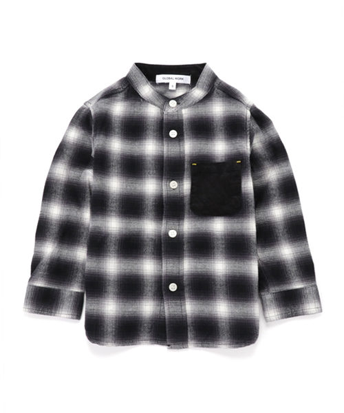 ★大人顔負け本格派シャツ★ シックなデザインで大人っぽく、トレンドのバンドカラー。 配色になったポケットがアクセント。 柔らかく肌触りの良いフランネル素材を使用し、着心地も抜群。 シンプルに羽織や一枚で着ても、アウターなどのインとしても使え、幅広いスタイリングに活躍してくれます。