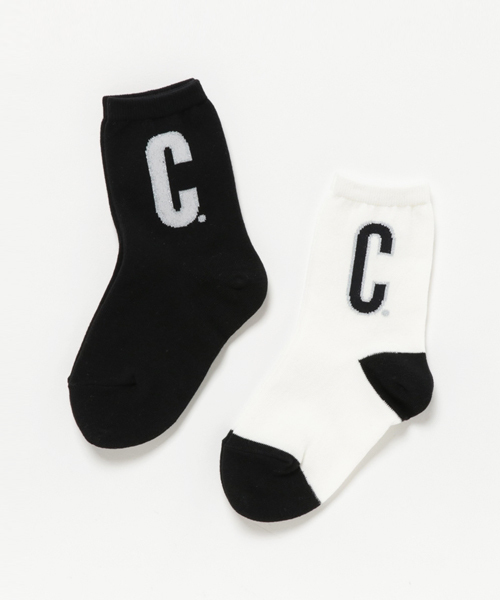 大きく「C」が入ったクルーソックスの2足セットは、使いやすいホワイトとブラックカラー。プレゼントなどにもオススメです。こちらの商品は【Made in Japan】です。
