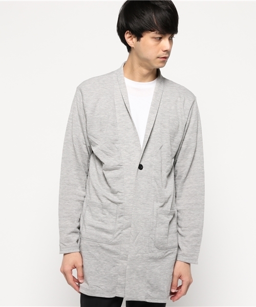 トレンドのロングカーディガン。薄手のジャカード生地を使用しているのですぐにでも着用できます。季節が進んだらアウターインに着るアイテムとしても使用でき、ロングスパンで活躍するアイテム。