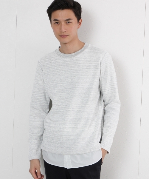 ★一枚でスタイル完成の便利アイテム★ Tシャツとシャツを重ね着したようなフェイクレイヤードデザインが特徴。 一枚でスタイリングがきまるのコーディネートが楽です。アウターカーディガンなど羽織ものインに合わせて快適にレイヤードスタイルが楽しめるのがポイントです。