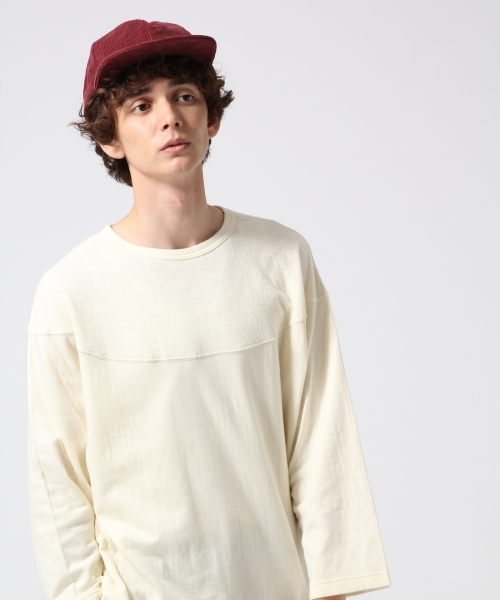 ダブルガーゼ生地を使用したアイテム!! 柔らかく、通気性の良いガーゼ素材を使用しています。 やや肩を落とし、リラックスしたシルエットは今年らしいシルエットです。 また生地の表裏を使い、それを上下で切替えるように使いアクセントにしています。 キュウシンのように仕上げたアイテムはデザイン性も相まって、 一枚着にも、重ね着にもおすすめの一枚です。