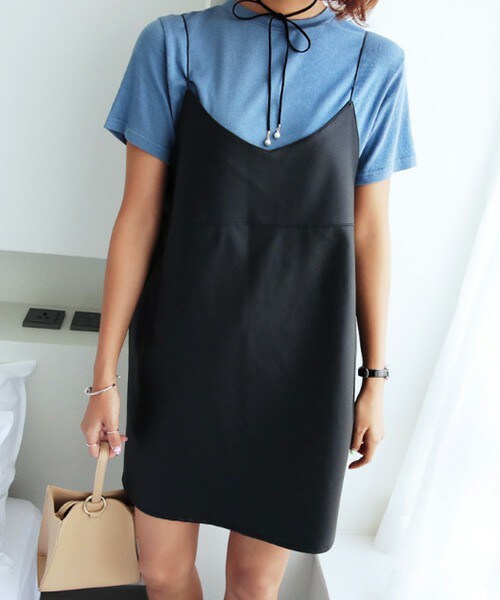素材のツヤ感がスタイリッシュなスリーブレスワンピースです。 ブラック一色の締りある見た目に洗練されたネックラインとストラップでレイヤードも綺麗に見えます。 リアルレザーに劣らない高級感。ボディラインを拾わないスッと落ちる シルエットが体型カバーにも。 ※WEARに記載してある金額と、DHOLIC通販サイトに記載してある金額にシステム都合上、稀に誤差が生じます。正しい金額はDHOLIC通販サイトに記載された金額です。