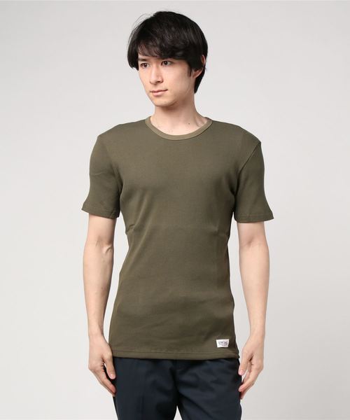 【ミリタリーテイストのNEWアンダーウェアーシリーズ】 FACTOTUM JEANSからNEWアンダーウェアーシリーズが登場。 しっかりとしたミリタリーテレコリブを使用した半袖カットソーとなっています。 タイトなシルエットで、一枚で着てもインナー使いとしても男らしさをプラスできる一着となっています。 ミニマルな見た目の万能カットソーとなっています。 RUDO 10月号掲載商品 LOADED 10月号掲載商品