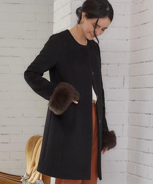 ◆様々な着こなしが楽しめる3WAYコート◆ 通勤やパーティーシーンにもおすすめしたいコートのご紹介です。 さり気ないAラインシルエットが、女性らしさを演出。 アザミ起毛を施したシャギー素材は、柔らかな肌触りがポイントです。 またファーを取り外して襟や袖に付けたり、シンプルなノーカラーコートとしての着用も出来る3WAY仕様。ファー単独でティペットとしてもお使いいただけます。 飽きのこないシンプルなデザインが大人な女性にぴったりのいちおしコートです。 ※こちらはWEB限定サイズ拡大商品(34/42/44/46サイズ)になります。 ※照明の関係により、実際よりもやや明るく見える場合がございます。またパソコンなどの環境により、若干製品と画像のカラーが異なる場合もございます。予めご了承ください。 ※袖にファーを付ける際は、本体袖の先端に付ける仕様の為(ボタン)、その分袖丈が長くなります。 ※襟にファーを付ける際は、2つのファーをボタンで1つに繋げてご使用下さいませ。 ※ファー部分は素材の特性上、ボリュームや毛並みの色味や風合いに個体差がある場合がございます。 店舗にお問い合わせの際は、全国のグリーンレーベル リラクシング各店まで下記の品番をお申し付け下さい。 品番:3525-144-0481