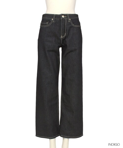 素材:綿100%大人のカジュアルスタイルのベーシックアイテムとして、程よくワイドなストレートデニムです。生地感、ステッチ色にまで拘った1枚です。バックポケットはヒップが小さく、高く見える位置にし、スタイルが良く見えるよう仕上げました。綿100%デニムを使用し、しっかりとした生地感で履き心地のよいデニムです。インスタイルやコンパクトなトップスとのスタイリングがおすすめです。