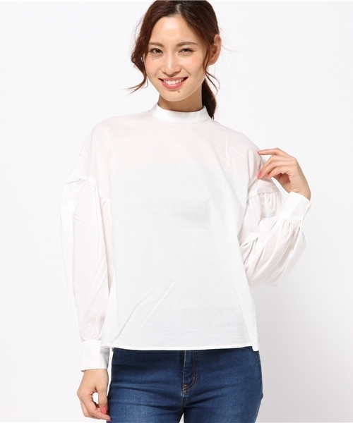 今季トレンドキーワードの袖ボリュームのブラウスは、今はデニム合わせで、秋はニットパンツに合わせるのがおすすめです。カラーはベーシックで使えるオフホワイトと秋冬トレンドのダークオレンジの2色展開にしています。